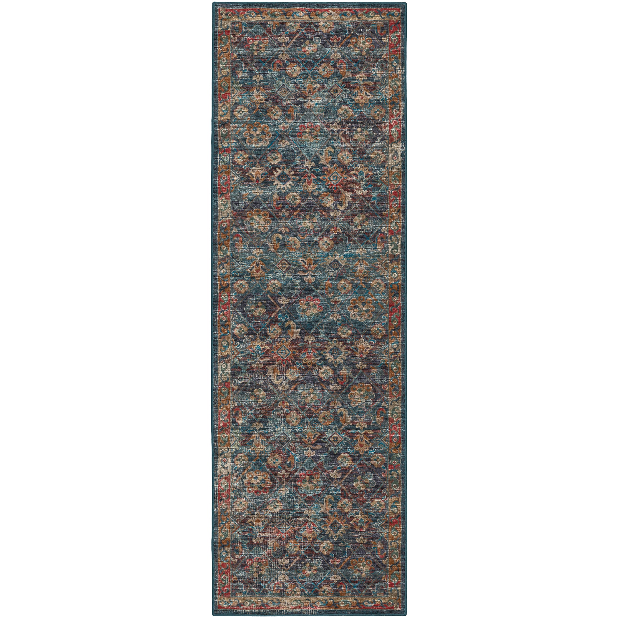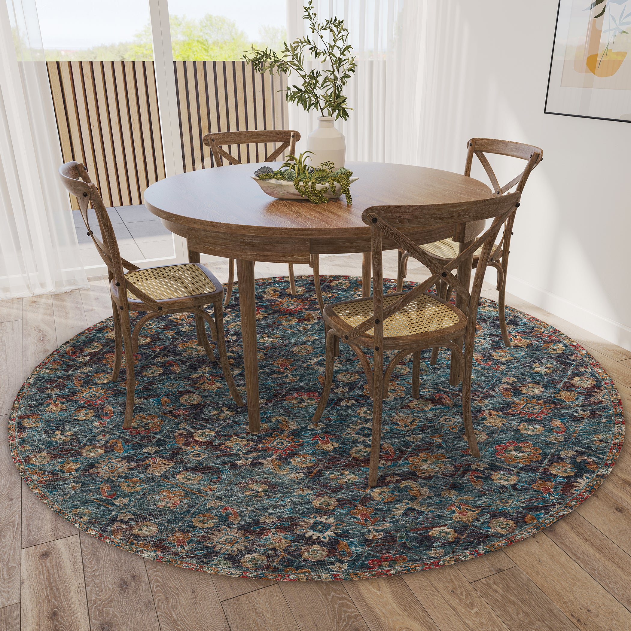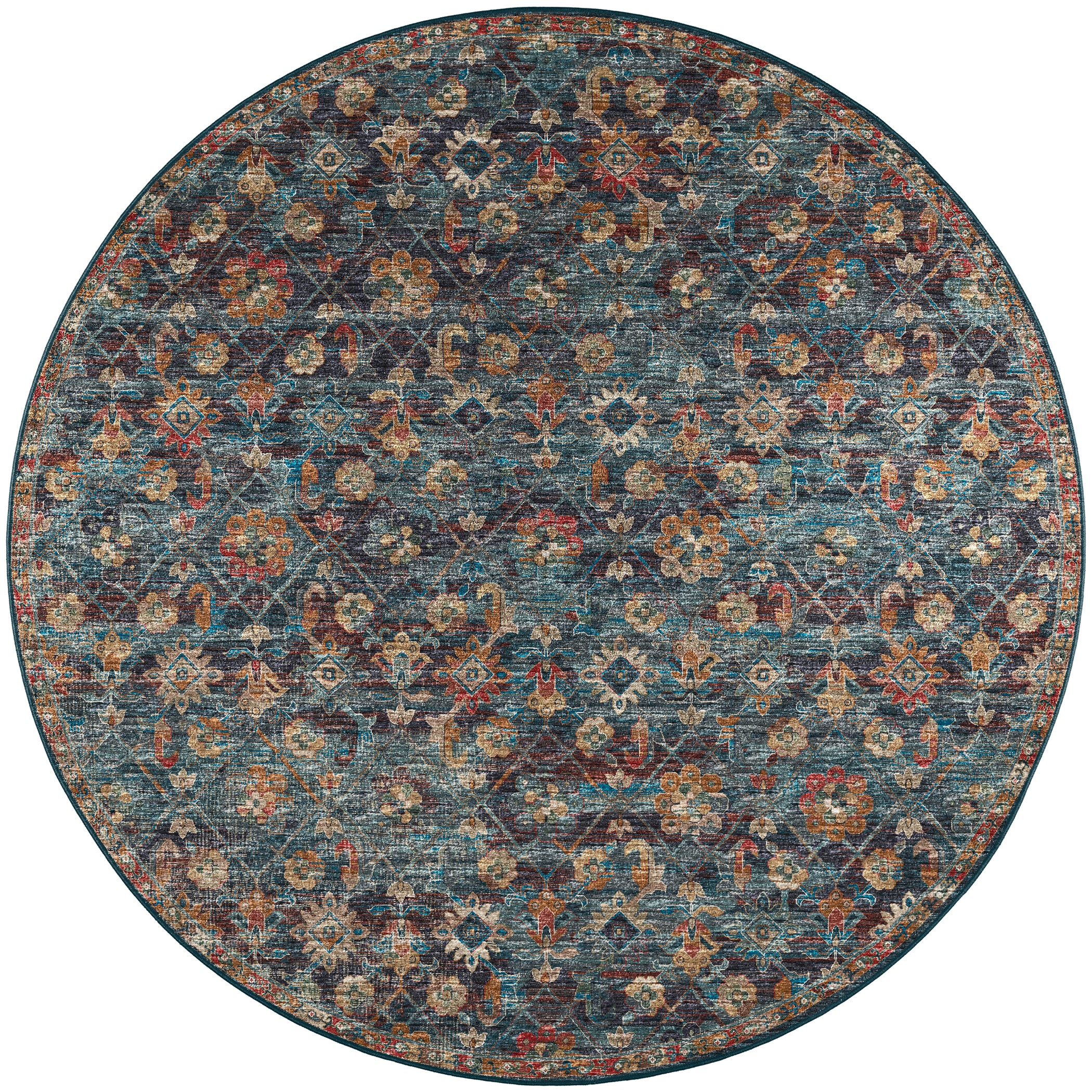 Colors in Rug: Navy, Teal, Gold, Spice