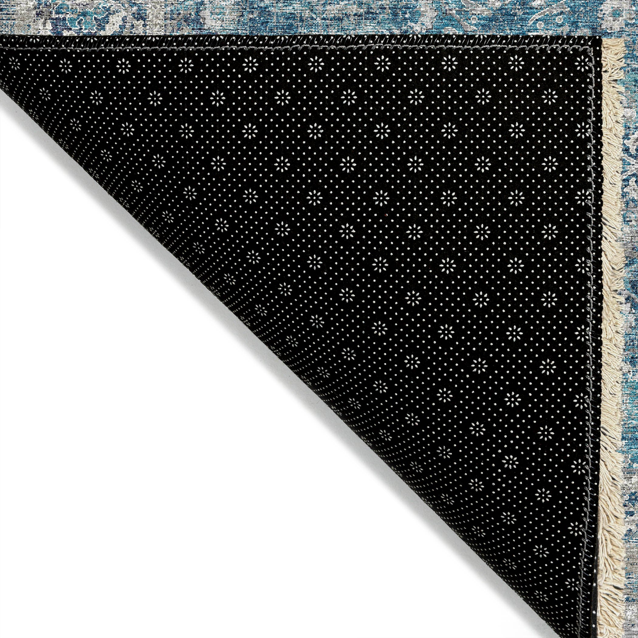 • Ultra thin polyester flat woven construction with an incorporated non-skid backing. A separate rug pad may be used for added cushion and support.