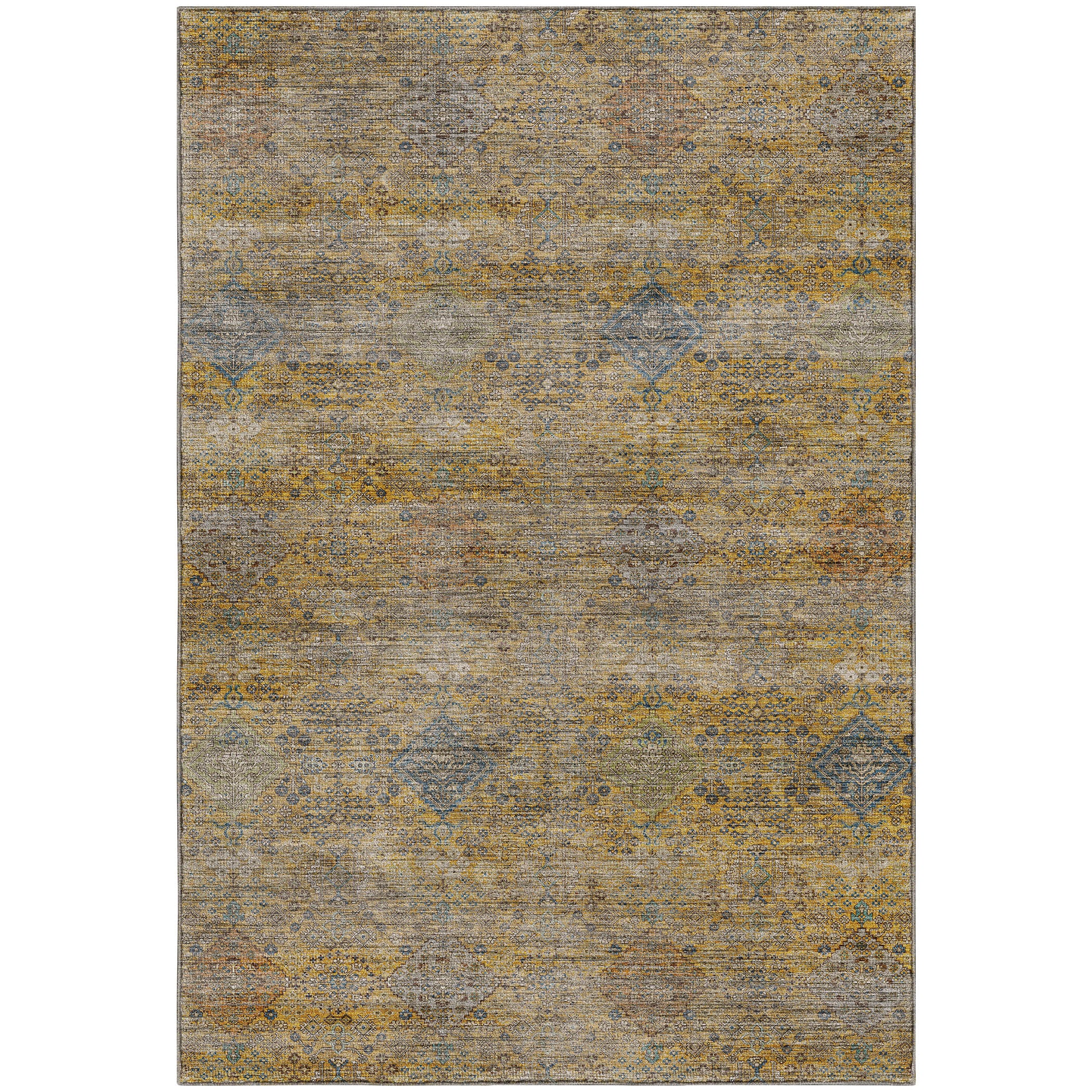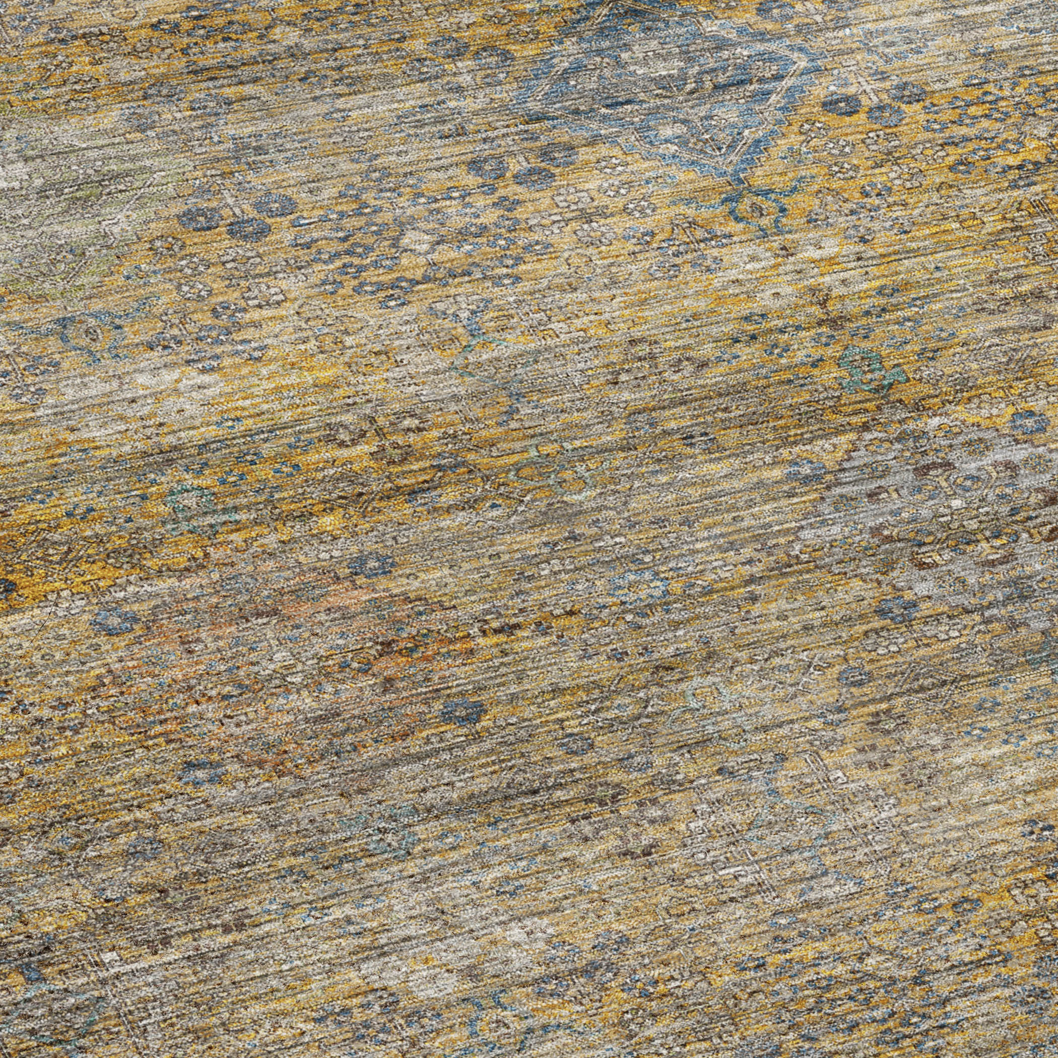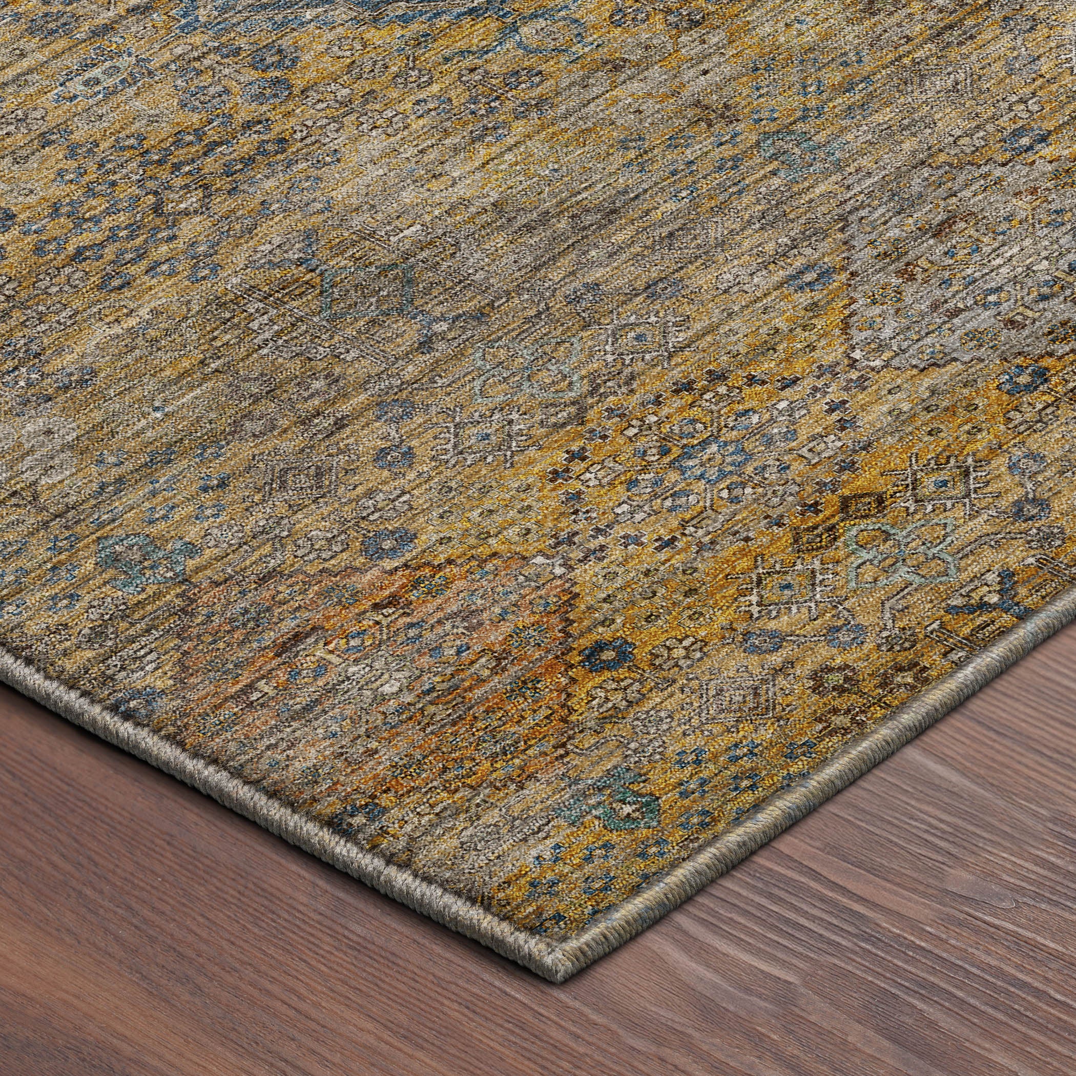 Colors in Rug: Gold, Copper, Ivory, Blue, Paprika
