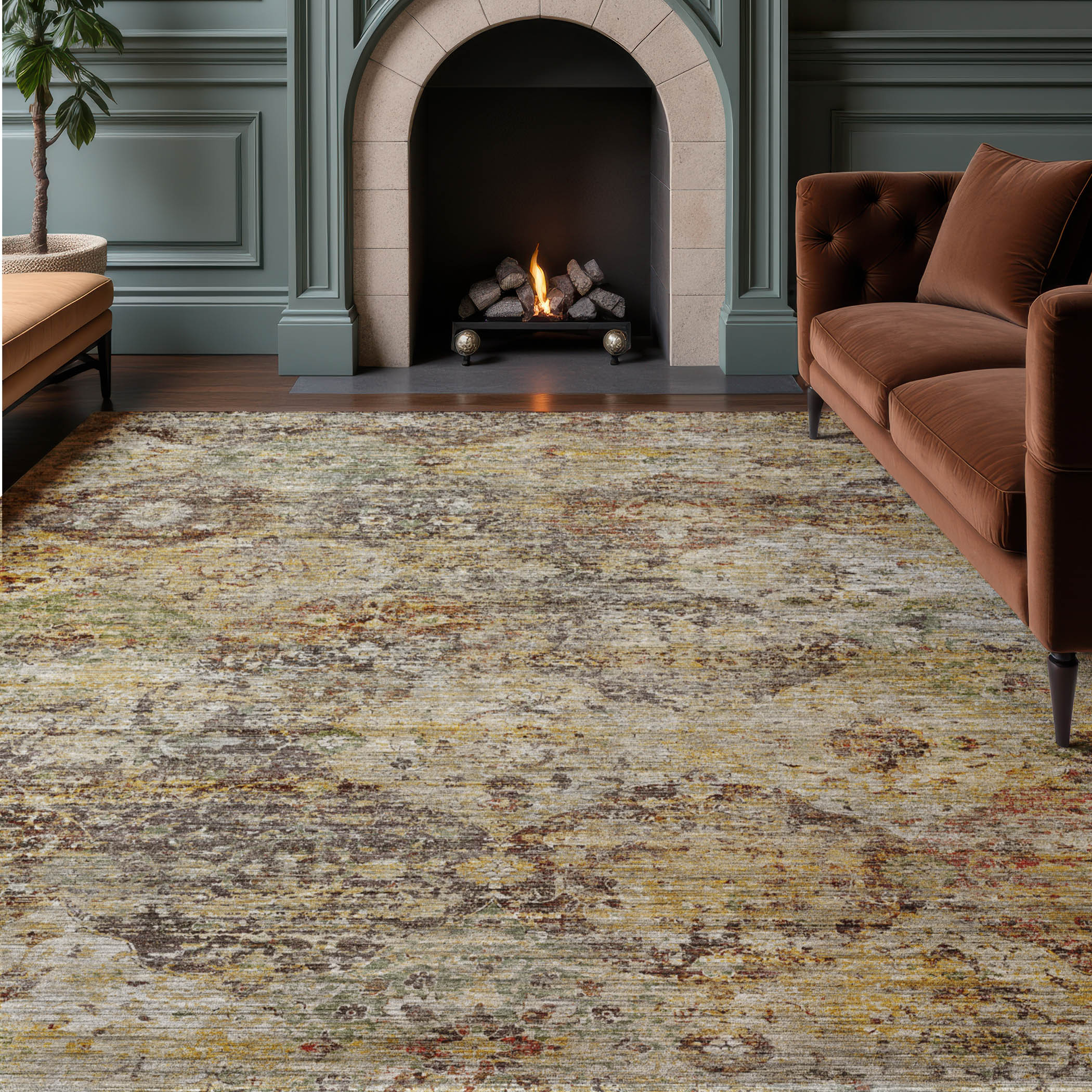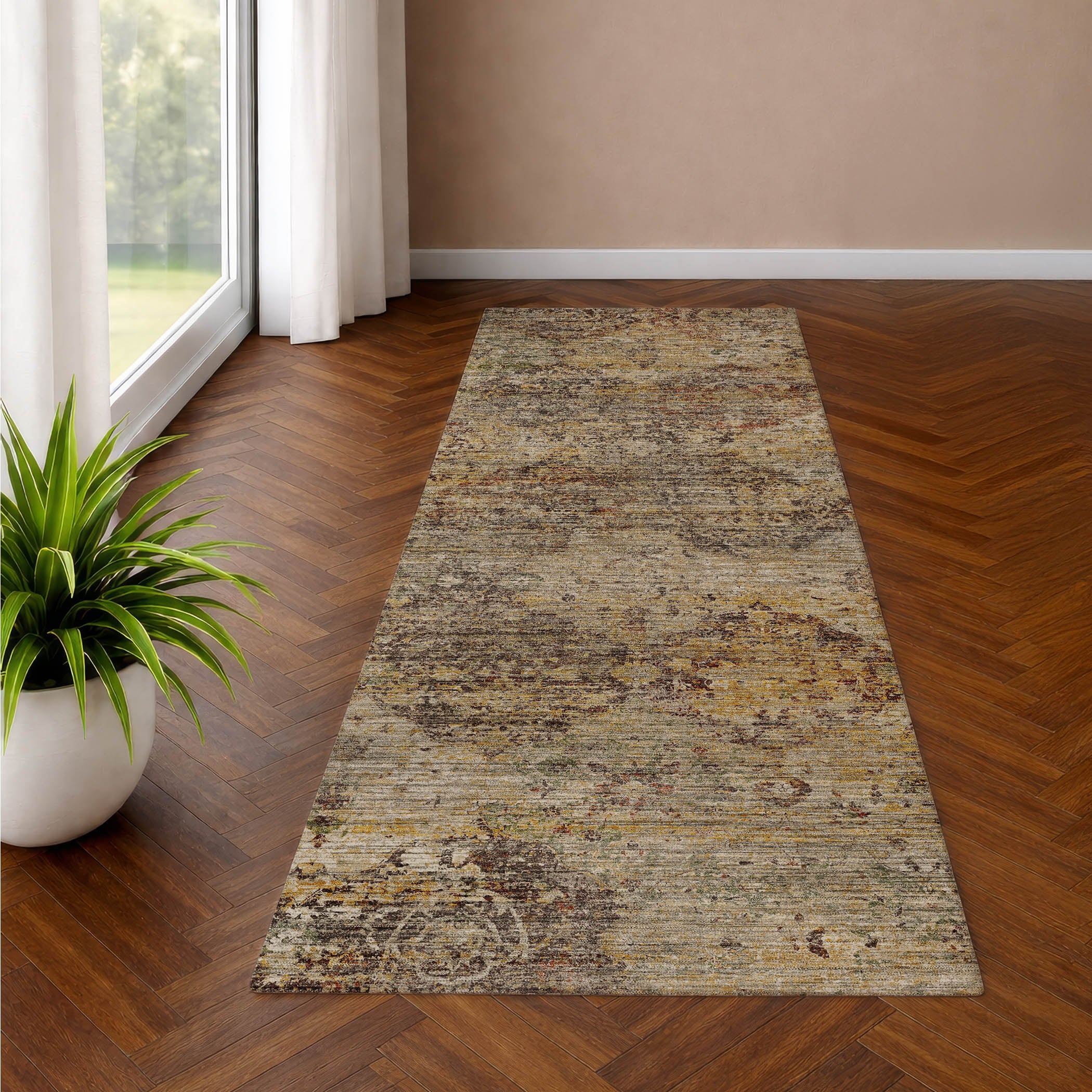 Colors in Rug: Wheat, Gold, Paprika, Taupe, Beige, Ivory, Green