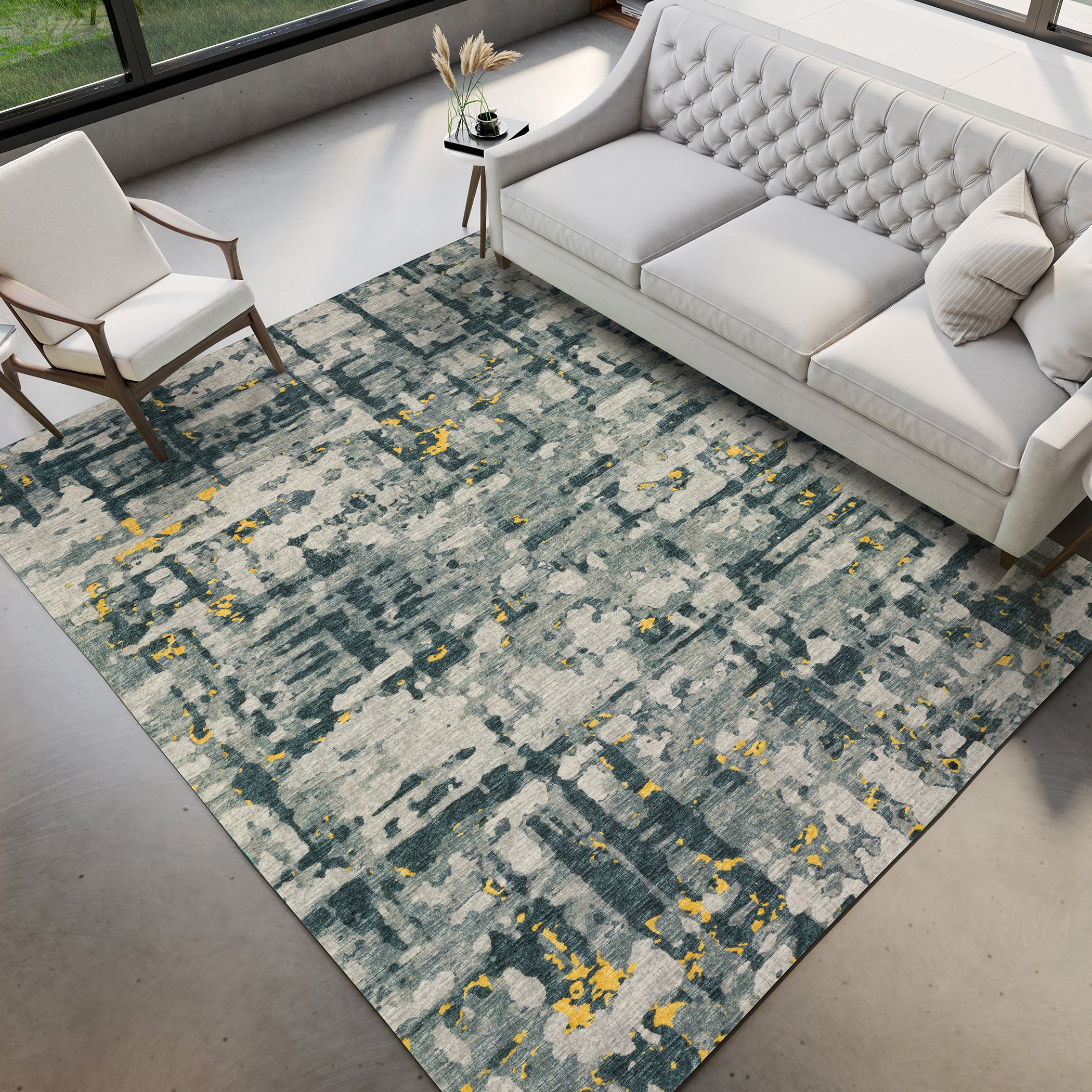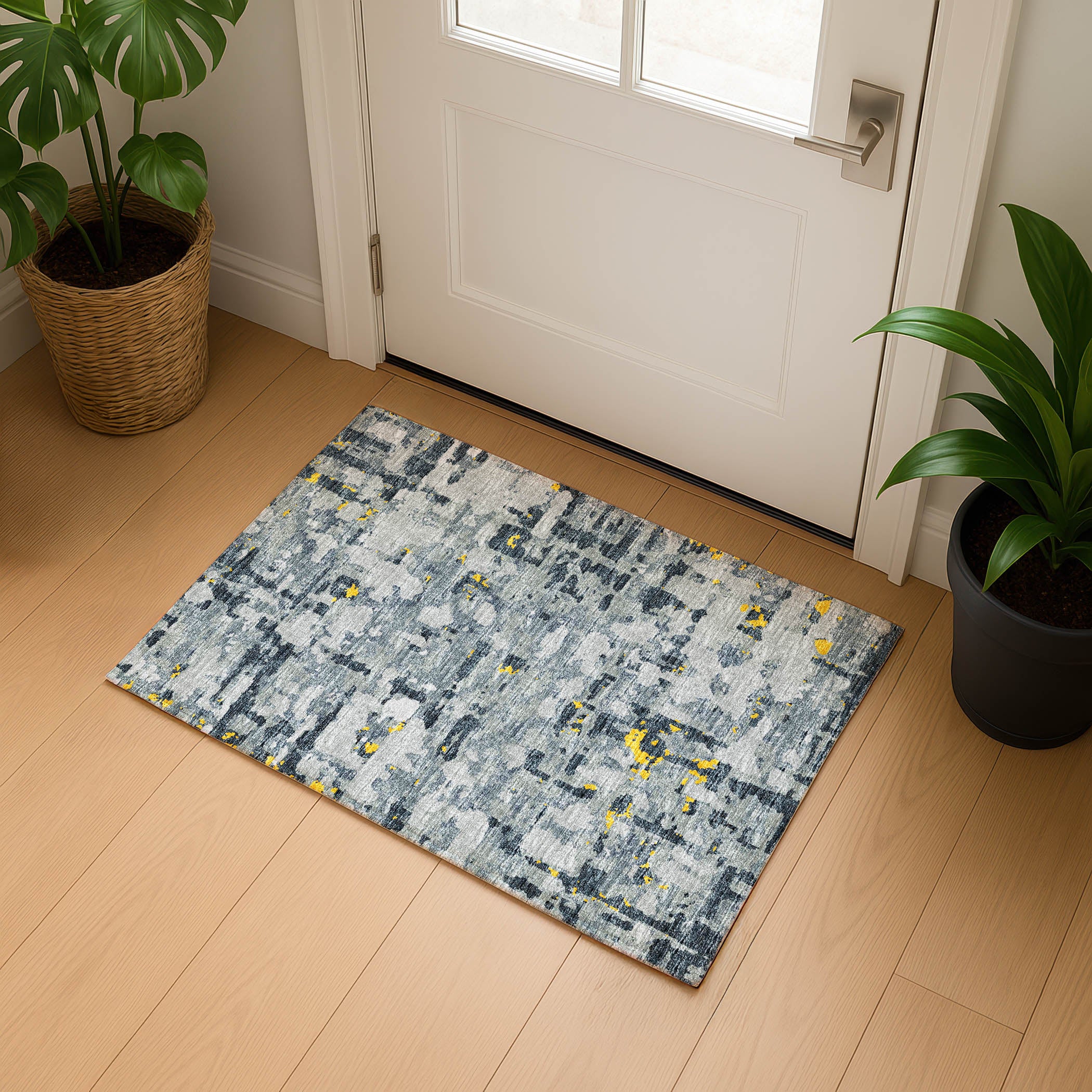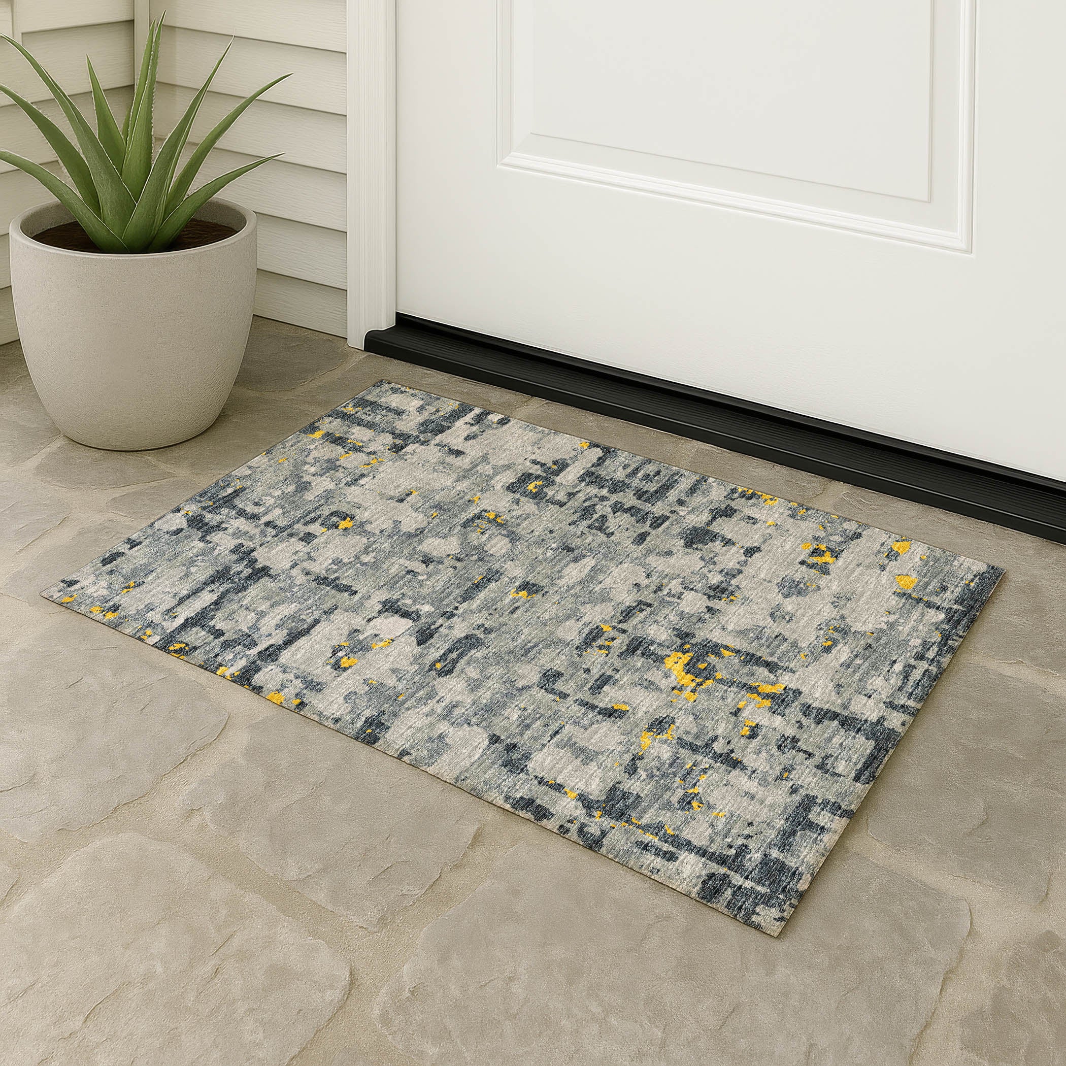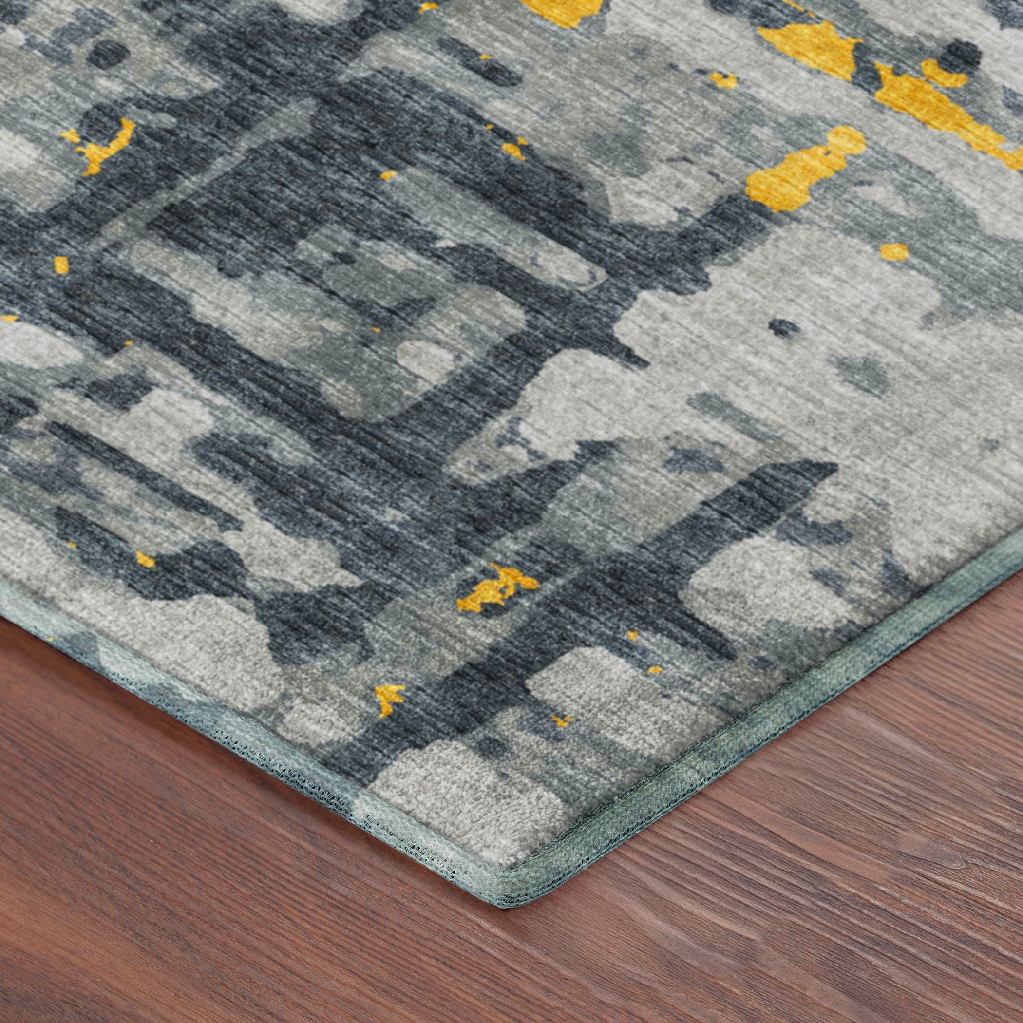 Colors in Rug: Gray, Charcoal, Gold, Yellow