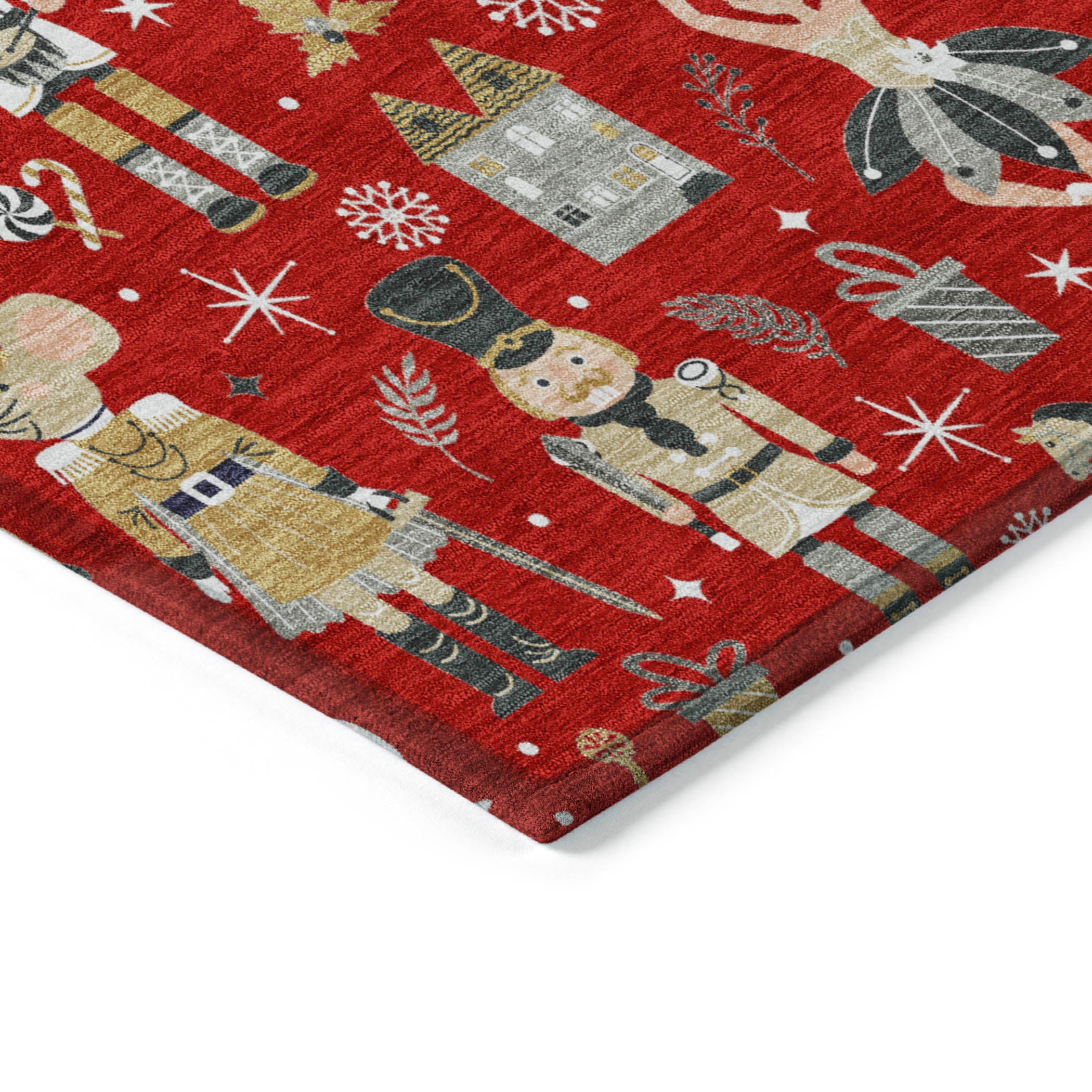 The Wonderland collection brings a charming blend of classic and whimsical holiday-themed rugs. Each rug is crafted with an ultra-thin 100% polyester pile and features a non-skid backing for added safety. Made in the USA with a mix of foreign and domestic materials, these rugs are UV stabilized for use in both indoor and covered outdoor spaces.