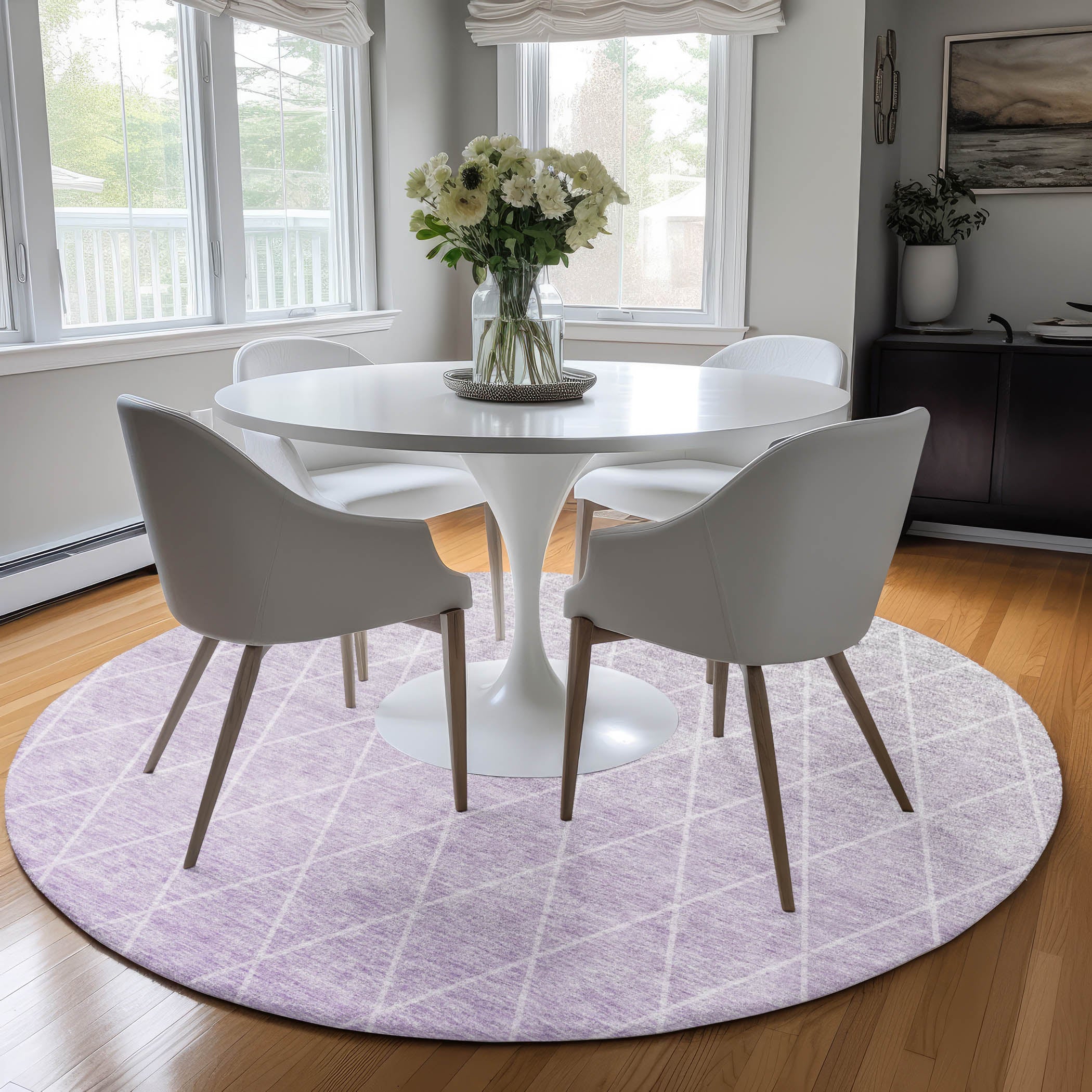 Colors in Rug: Lavender, Lilac, Gray, Silver
