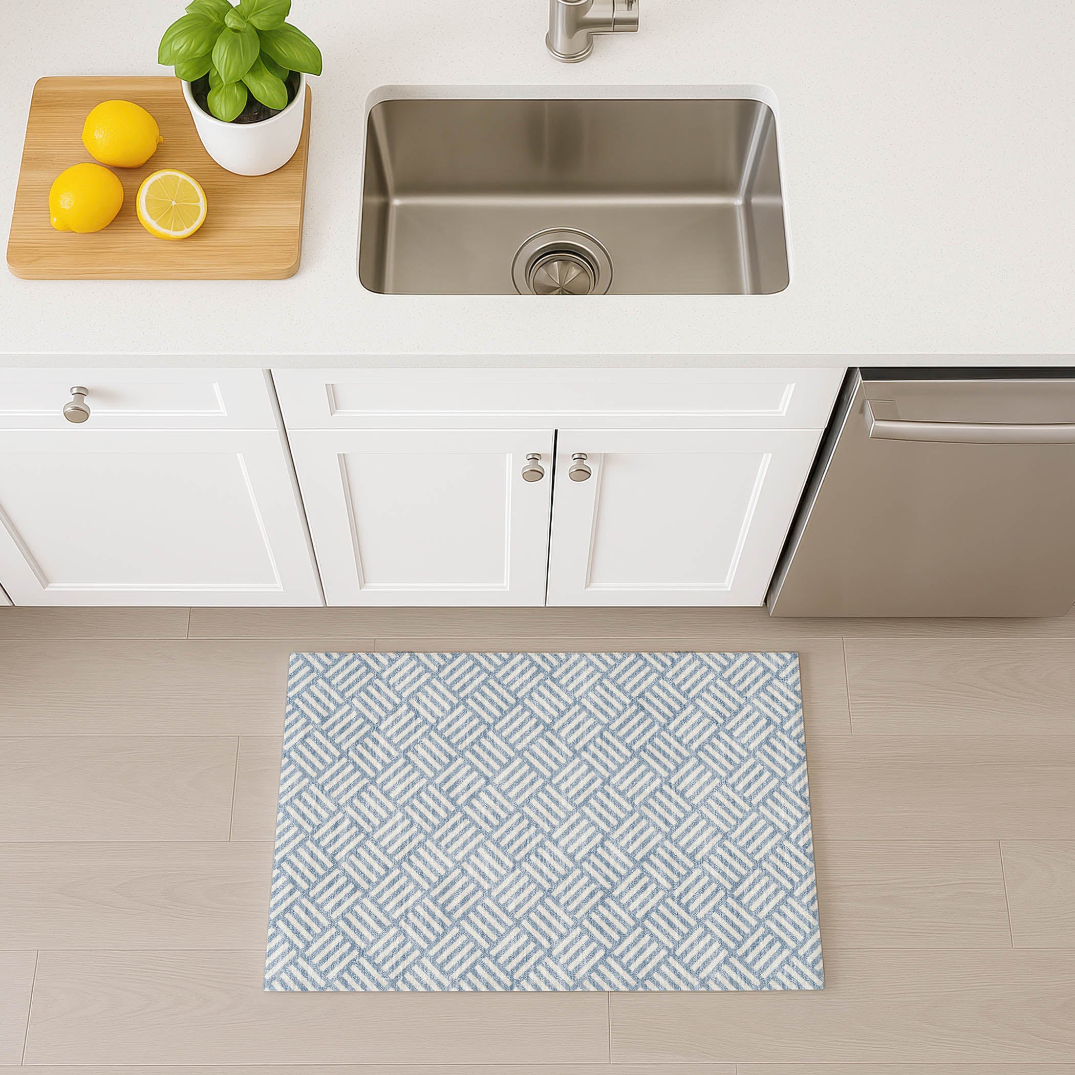 Delicate geometry and understated colorations come together in a rug that’s as functional as it is stylish. Its ultra-soft. microfiber is machine washable for low-maintenance upkeep, while the non-skid backing provides steady support. Crafted in the USA using a blend of global materials and local labor, it’s perfect for busy homes with pets and kids.